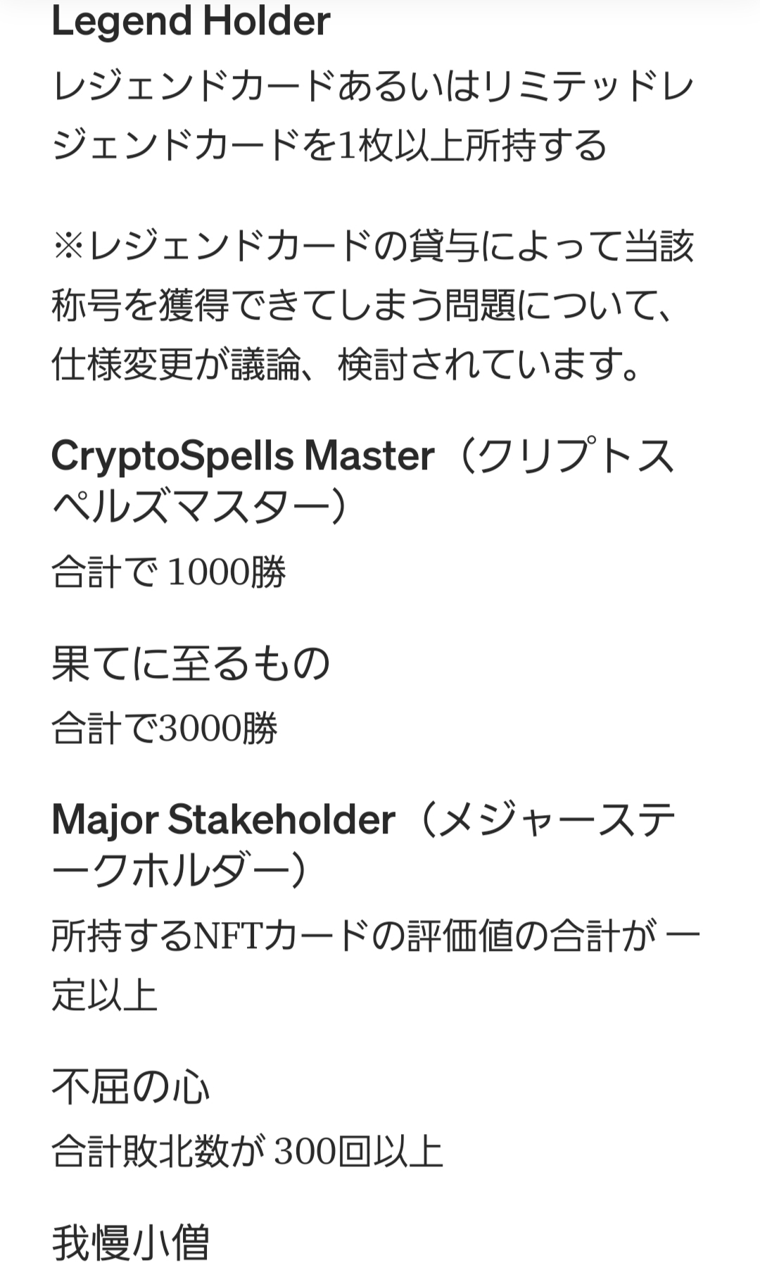 ※レジェンドカードの貸与によって当該称号を獲得できてしまう問題について、仕様変更が議論、検討されています。