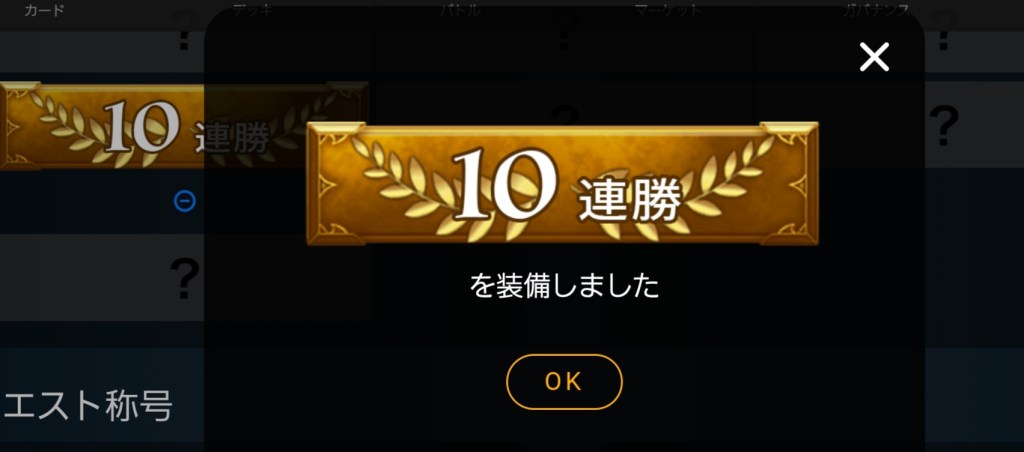 最後に10連勝した称号もらったのでそれを装着して、、おしまい!!