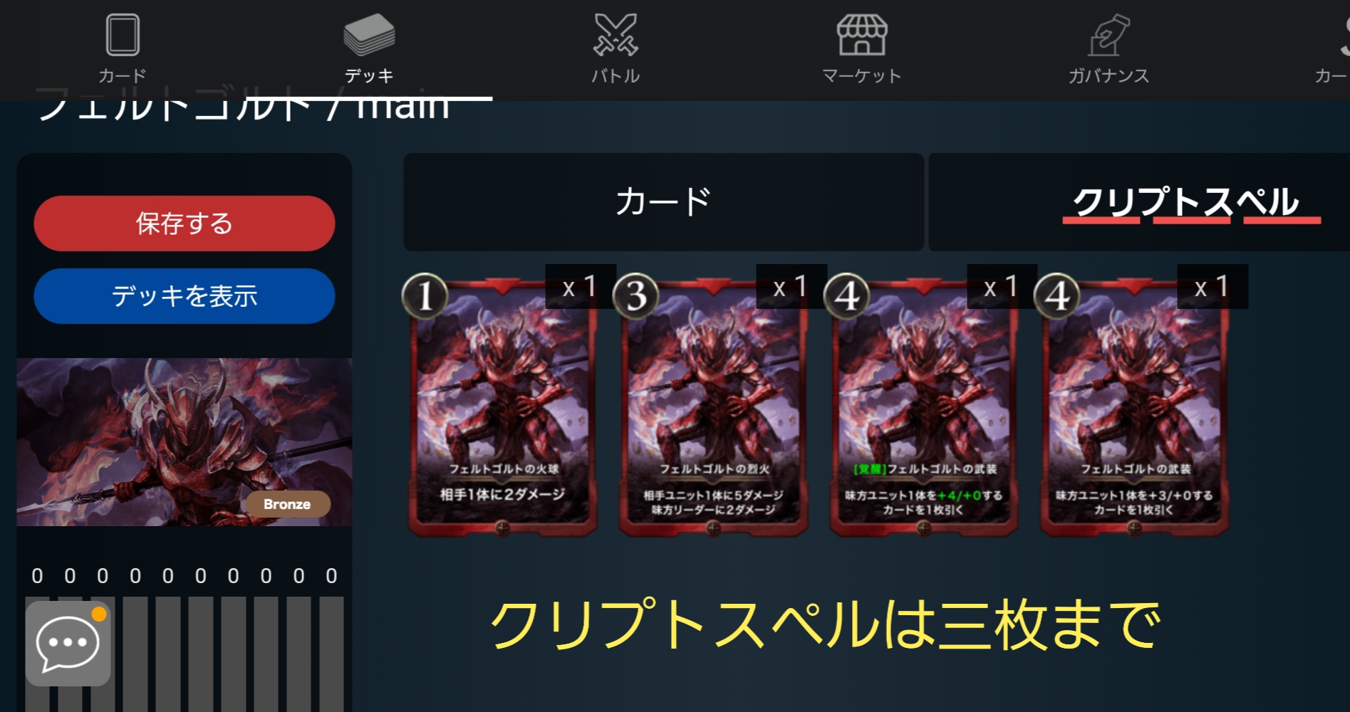 デッキはクリプトスペルカード3枚
