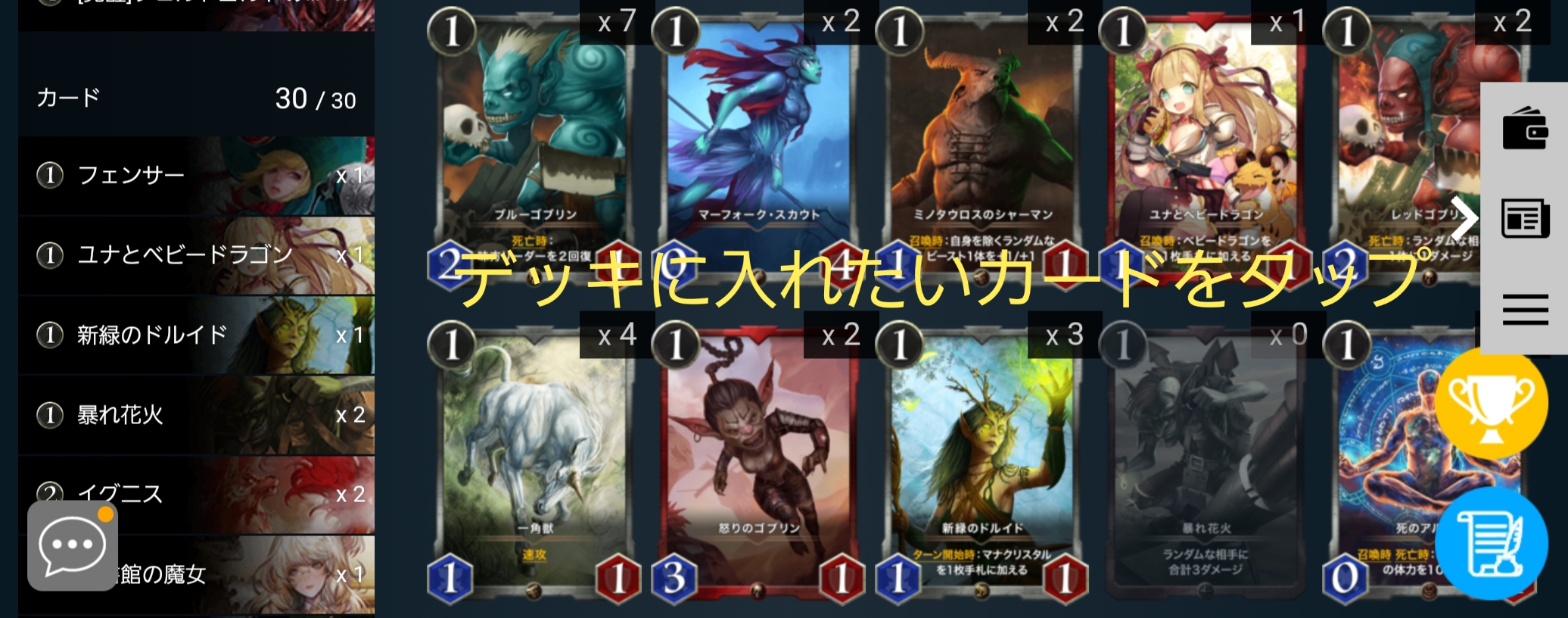 デッキに入れたいカードをタップし