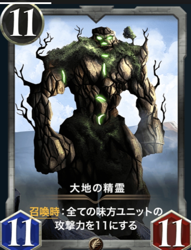 コストmp11の大地の精霊さん!強そうでしょ?強そうだからデッキにいれたのですが自分の11ターン過ぎても通常mpは10までしか上がらないから他のカードと一緒に使わないと大地の精霊さん使えないのね( T∀T)